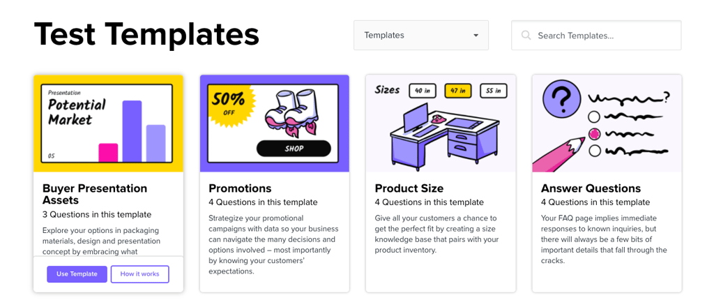 On our new Templates page in the Helio Learn section, you can select from over 70 preset survey and test layouts complete with detailed breakdowns and examples images to quickly get you over the hump of starting off that next project.