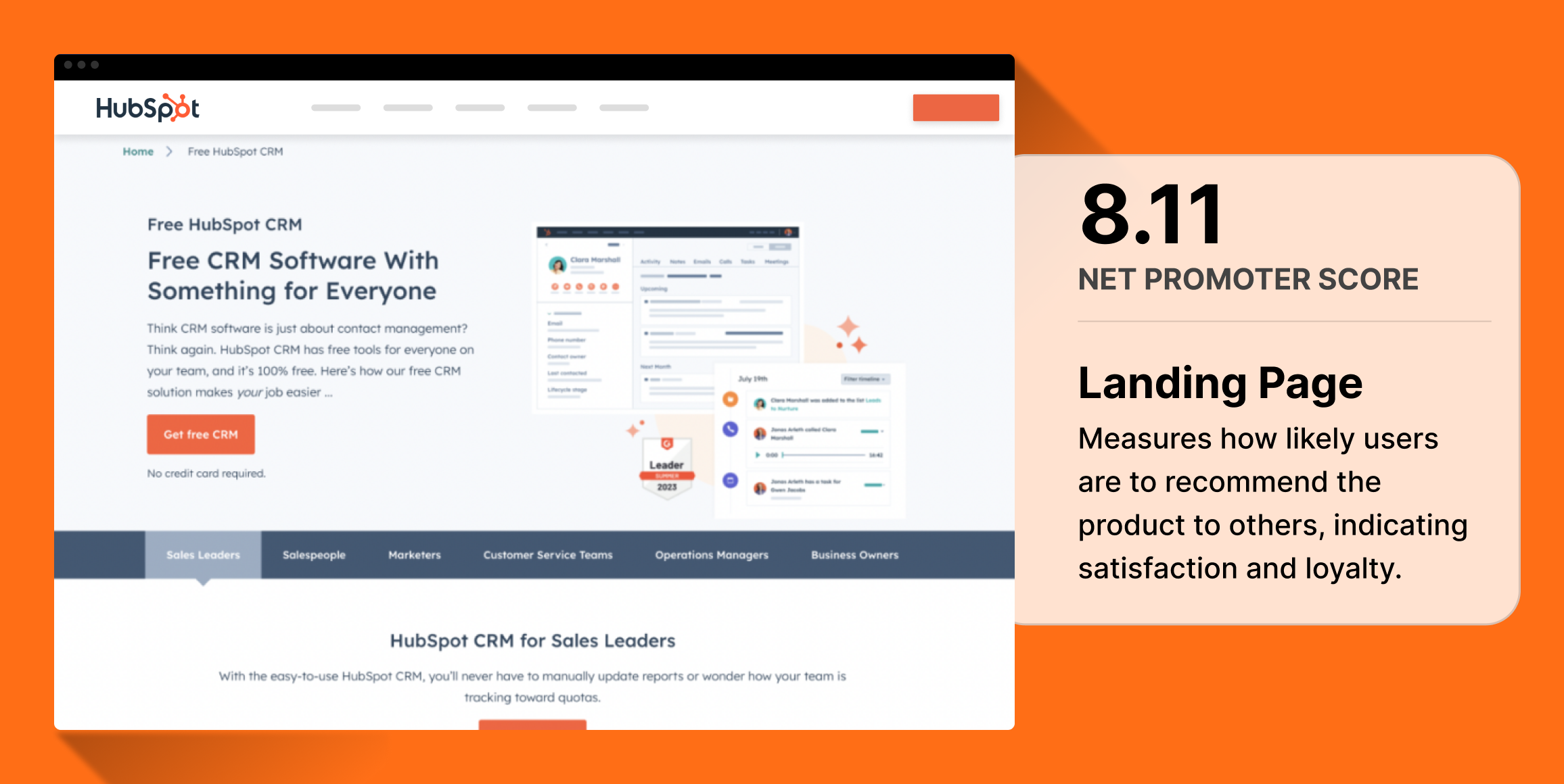 Hubspot’s landing page proved to be one of the strongest among competitors, encouraging high engagement with their ‘free’ CTAs and producing the strongest net promoter score of the five CRM platforms.