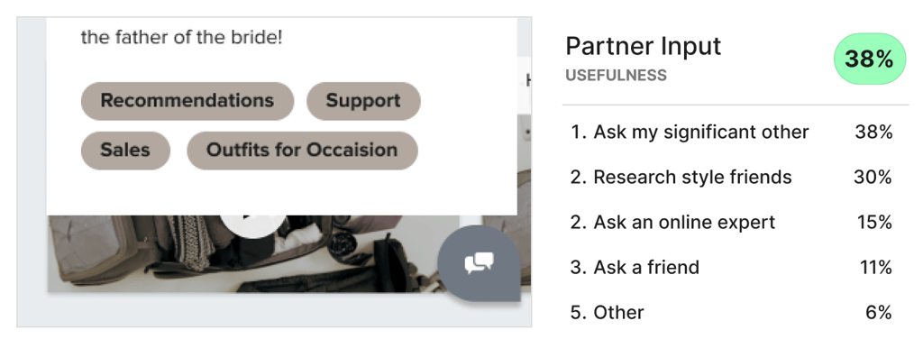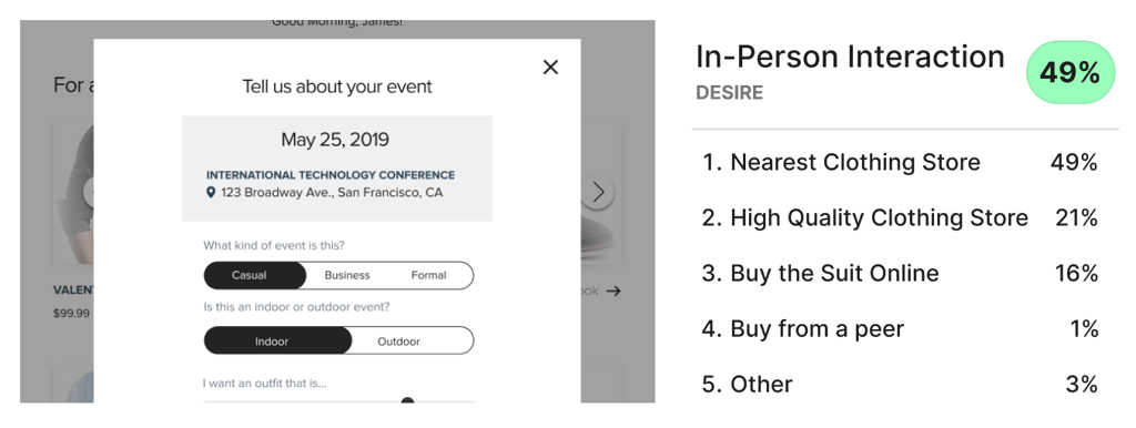 Over the course of 24 hours, we determined the key scenarios that would matter to a formalwear e-commerce company, and put them into a Helio test. By the next day, we had received 200 responses from our audience and were able to construct a framework to outline consumers’ decision-making.