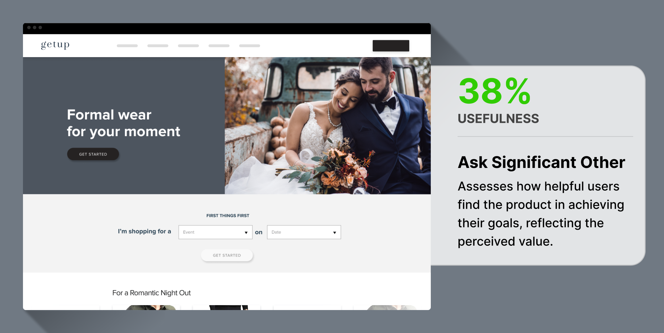 Getup, a formalwear clothing brand, We conducted a study to better understand the decision-making processes of consumers for a theoretical formalwear clothing brand called Getup. We wanted to understand how consumers would make decisions when engaging in various scenarios related to purchasing or renting formal attire. The challenge was to identify the most popular consumer actions to optimize marketing strategies and enhance user experience on digital platforms.