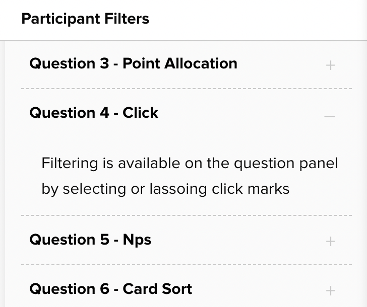 While you can activate filters by selecting clicks on the image, click tests are one of the only question types in Helio that don’t allow you to activate a filter through the Participant Filters panel.