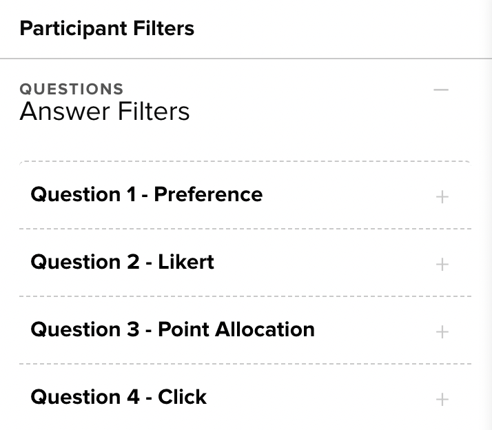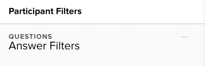 To close the entire list of question filters so that you only see the demographic filters for the audience, click the minus sign next to Answer Filters at the top of the Filters panel.