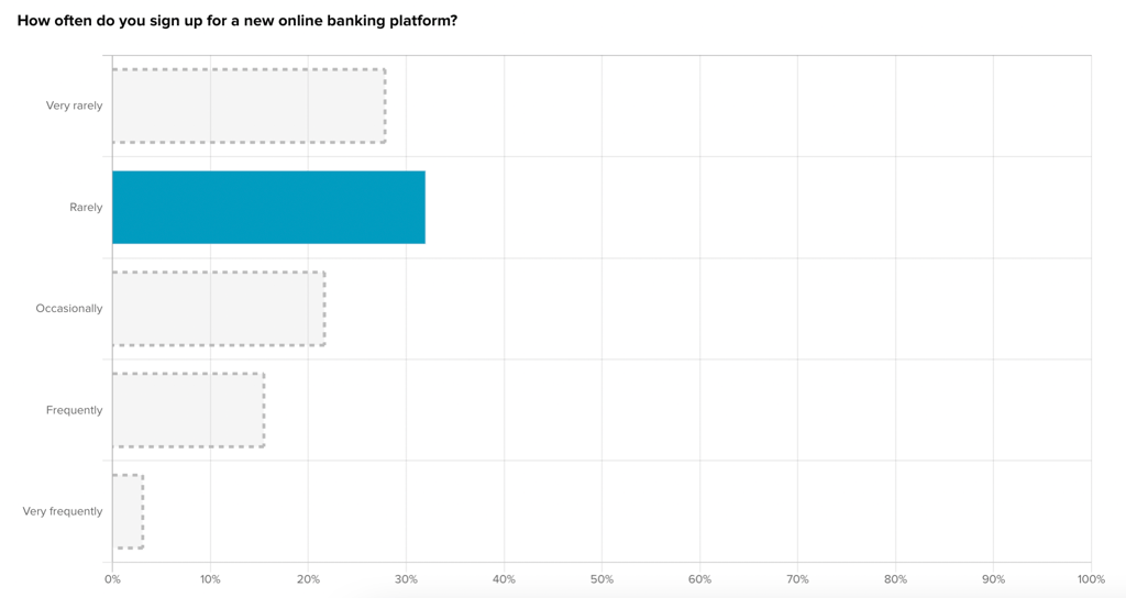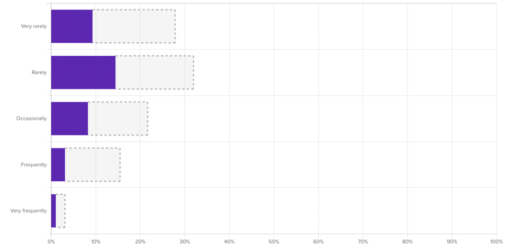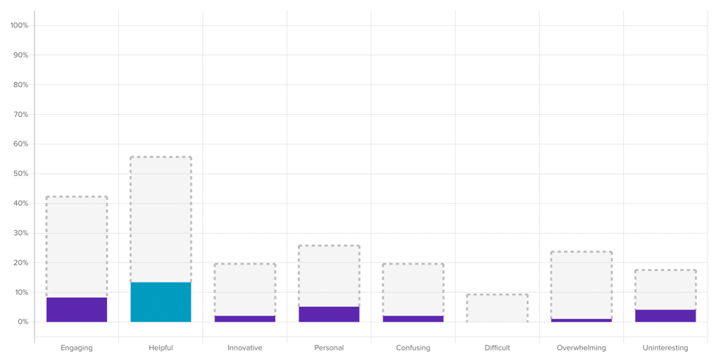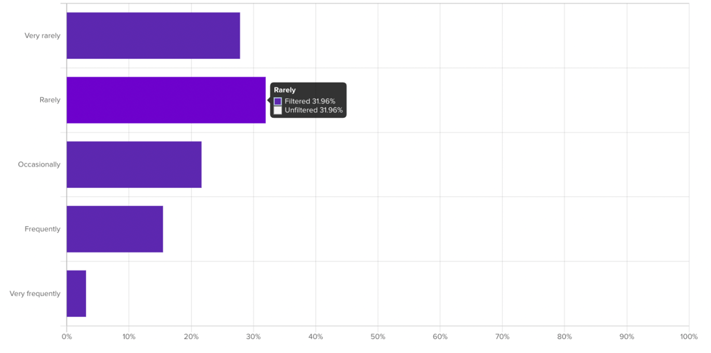 When you activate a filter on another question in the survey, the multiple choice bar chart will reflect the new filtered data (dark purple bars) and the original unfiltered responses (gray outlined bars).