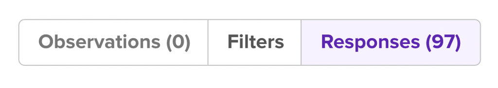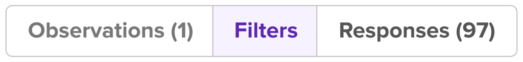 The Audience Bar will open when you activate your first filter on the survey, and will remain open to give you context of what is happening with your response count. The fraction represents the amount of participants who have responded to the test (97) out of the number of responses originally ordered for the test (100).