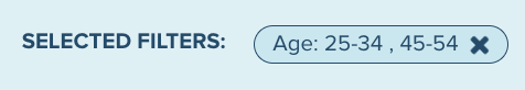 Clicking the ‘X’ on a filter pill will deactivate that filter on the survey. If multiple filters are selected on the same question or demographic, both selections will appear in the same filter pill. In this case, clicking the ‘X’ on the filter pill will deactivate both filter selections.