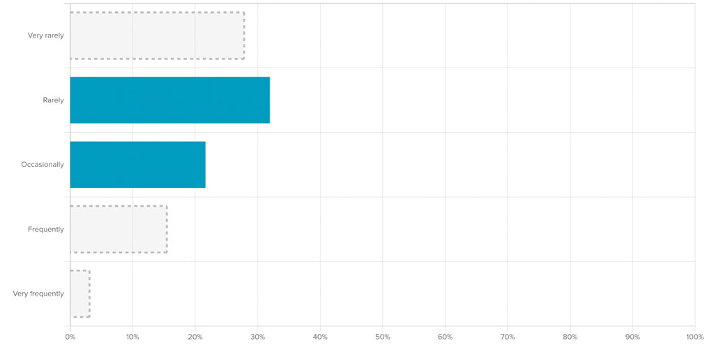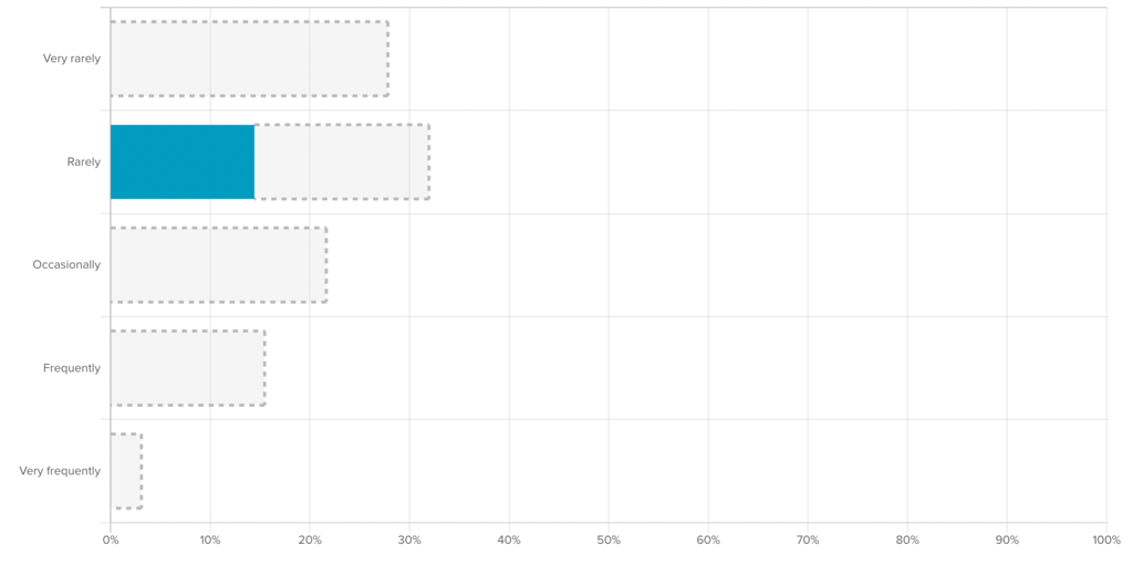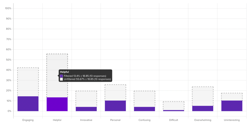 When you activate a filter on another question in the survey, the likert bar chart will reflect the new filtered data (dark purple bars) and the original unfiltered responses (gray outlined bars).