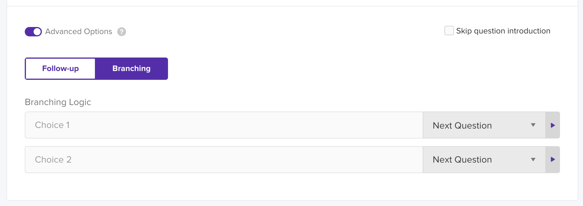 Customize your surveys and determine what pathways you want participants to follow based on their previous answers. Branching logic can be used on all questions in Helio, excluding multi-select multiple-choice questions.