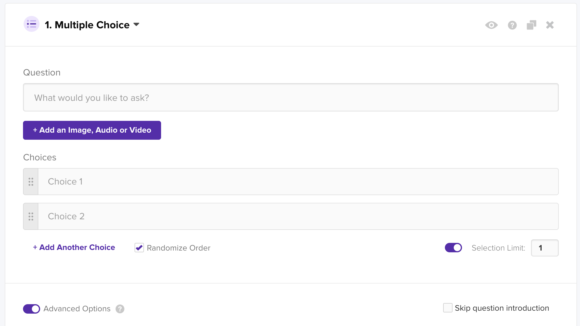 - Selection Limit – turn this toggle off to give participants the option to select from all your multi-choice answers, or raise the answer limit to understand the top selections out of all choices.