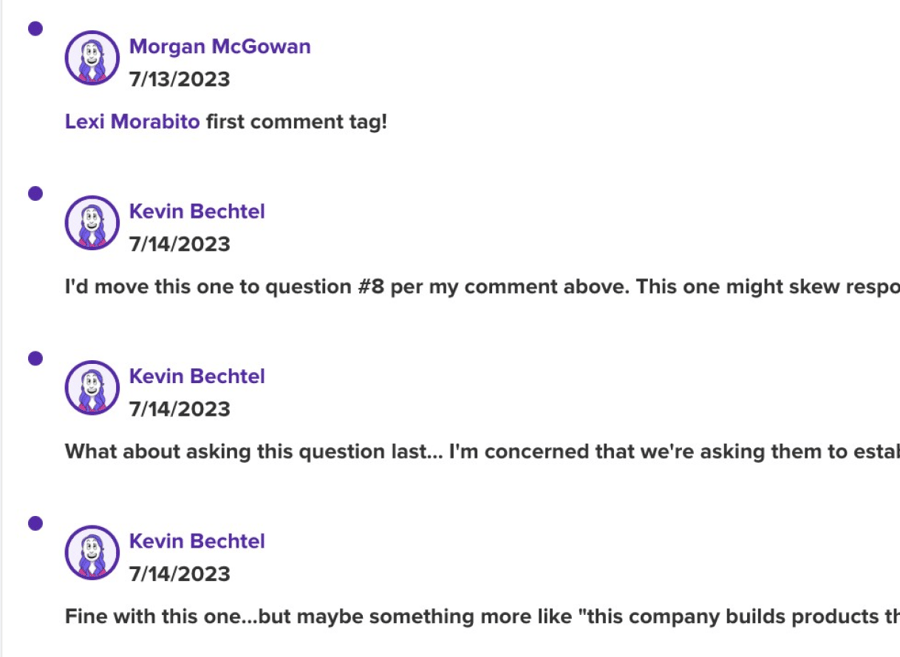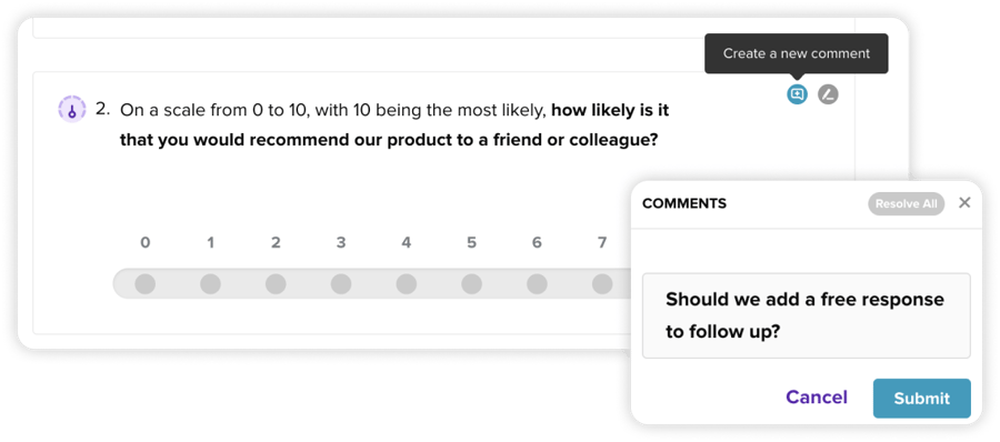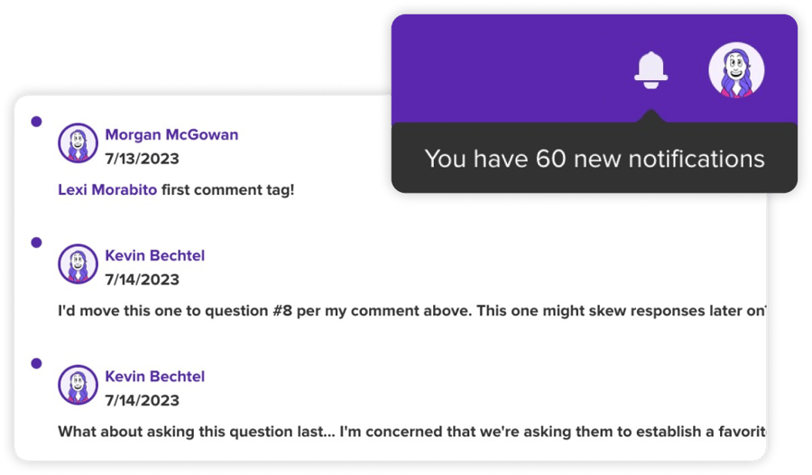 Make it easy for everyone on your team to comment and collaborate on your tests and surveys.