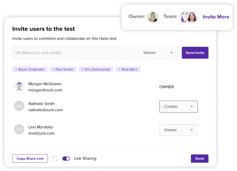 Share a test with your team to start the feedback loop and send the test out faster. Reduce the stakeholder lag.